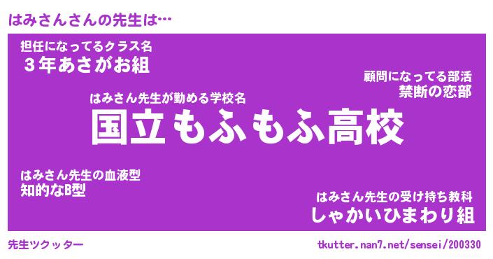 | 意味不明あだ名 | 『ペロリンはみさん』『永久保存はみさん』 |