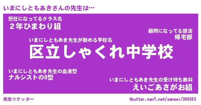 | 肩書あだ名 | 『いまにしともあき御曹司』 |