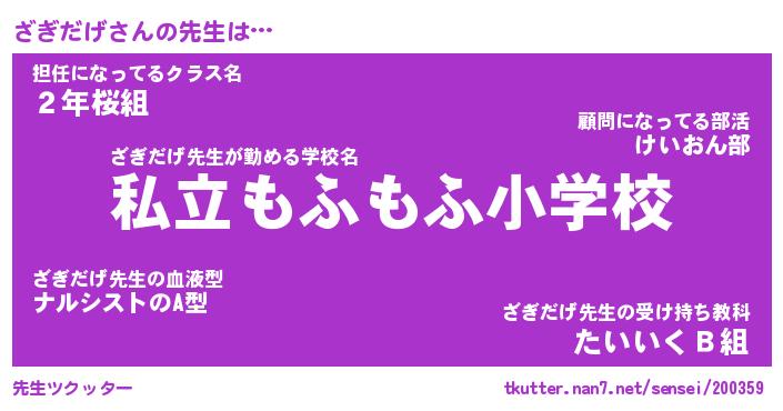 | 意味不明あだ名 | 『ペロリンざぎだげ』『永久保存ざぎだげ』 |
