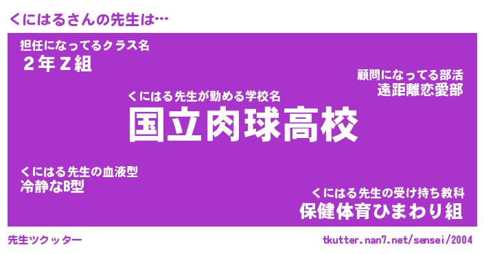 | ファンタジー風あだ名 | 『クニフェル』『エターナルクニハルー』 |