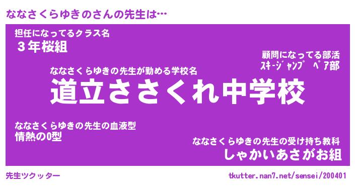 | 胡散臭い通販商品みたいなあだ名 | 『モテモテ間違いなし霊験あらたかなお札…その名も「ななさくらゆきの」』 |