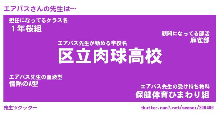 | 意味不明あだ名 | 『ペロリンエアバス』『永久保存エアバス』 |