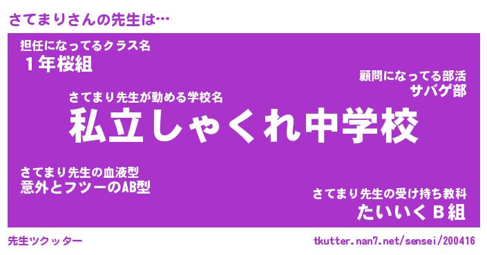 | 欧米人風あだ名 | 『マイケルさてまり』『ウサインさてまり』 |