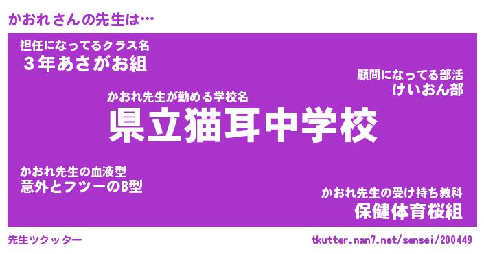 | ヘコむあだ名 | 『かおにー』『酢こんぶ』 |
