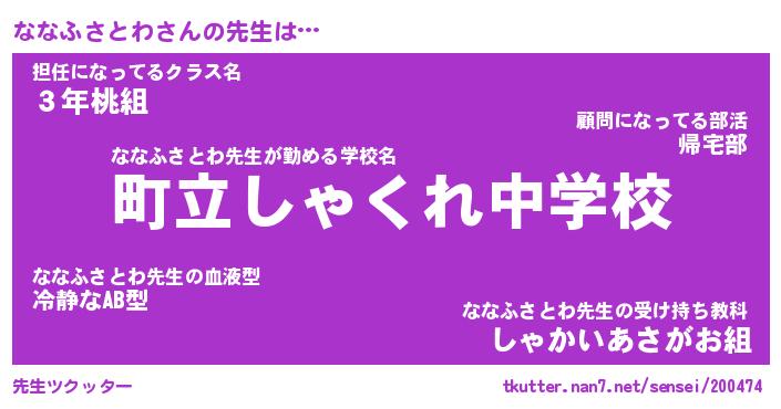 | ポケモン風あだ名 | 『ナナチュウ』『ナナフダネ』 |