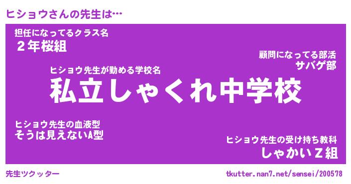 | 意味不明あだ名 | 『ペロリンヒショウ』『永久保存ヒショウ』 |