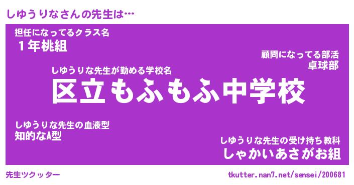 | ヒーロー風カッコイイあだ名 | 『スーパーシユウリナ』『魔戒騎士シユ』 |