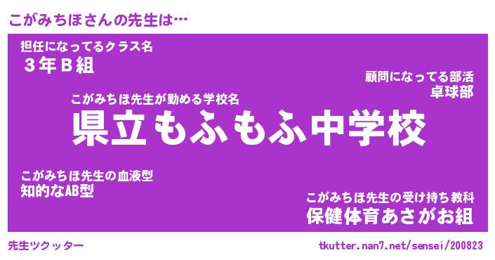 | 肩書あだ名 | 『こがみちほ店長』『こがみちほ総理大臣』 |