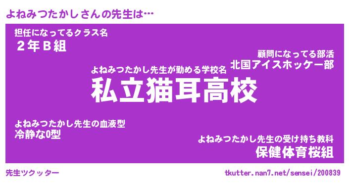 | ヘコむあだ名 | 『よねにー』『豆乳』『よね太郎』 |