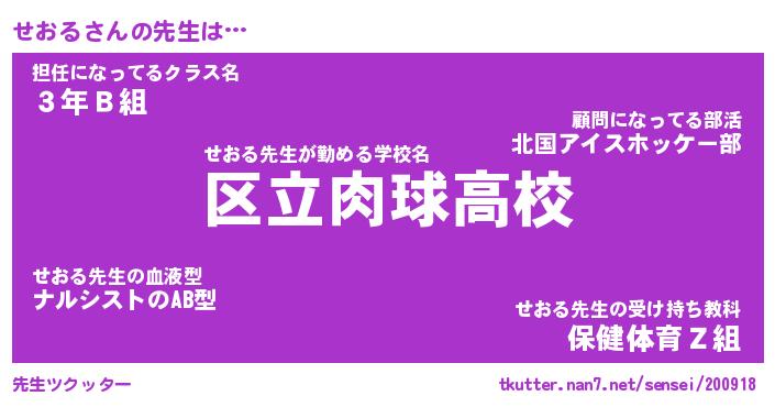 | ヘコむあだ名 | 『せおふぇ~』『なまこ酢』 |