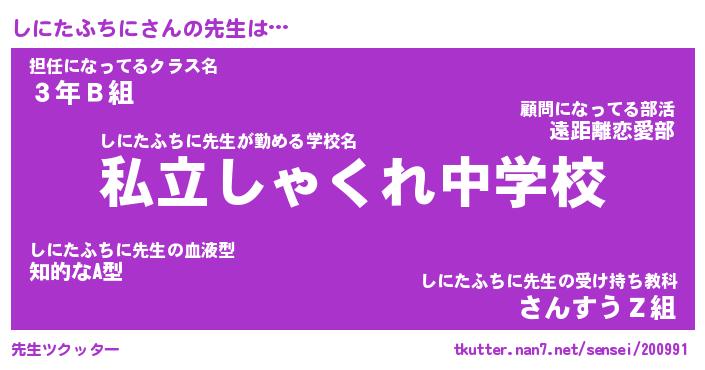 | 伝説のあだ名 | 『伝説のスナイパーしにたふちに』 |