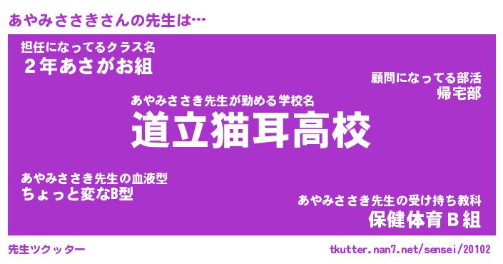 | ポケモン風あだ名 | 『アヤチュウ』『アヤミダネ』 |