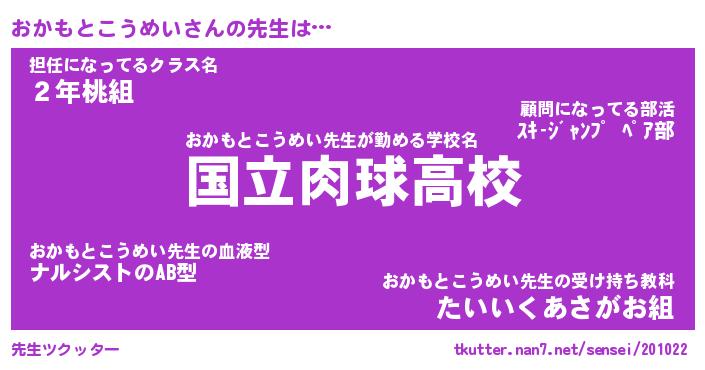 | 学校 | おかもとこうめい校長が勤める学校の名前『県立絶頂大学』 |
