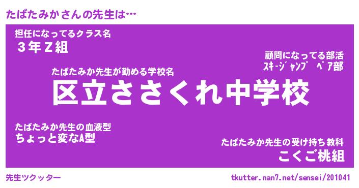 | 肩書あだ名 | 『たばたみか社長令嬢』『たばたみか教頭』 |