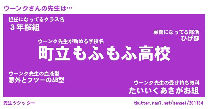 | ピコ太郎風あだ名 | 『ウコ四郎』『ピウ六郎』『ウー五郎』 |
