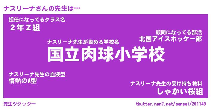 | 2回繰り返すあだ名 | 『ナスナス』『ナナスス』『ぬらぬら』 |