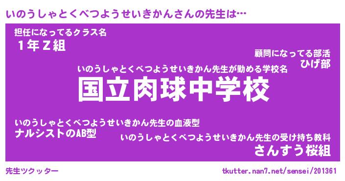 | 意味不明あだ名 | 『ペロリンいのうしゃとくべつようせいきかん』 |