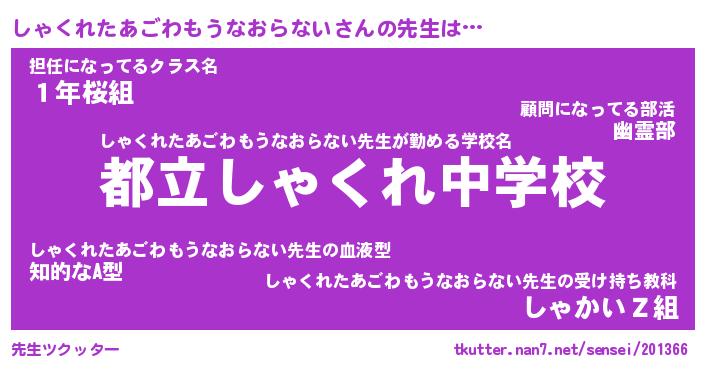 | 胡散臭い通販商品みたいなあだ名 | 『モテモテ間違いなし霊験あらたかなお札…その名も「しゃくれたあごわもうなおらない」』 |
