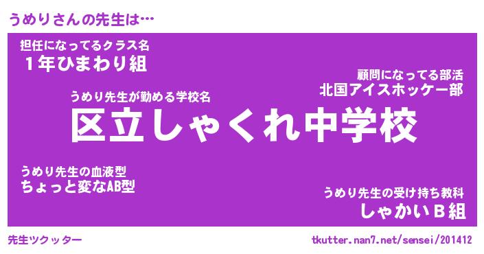 | ヒーロー風カッコイイあだ名 | 『スーパーウメリ』『ウルトラうめりマン』 |