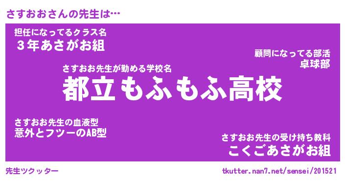 | 意味不明あだ名 | 『ペロリンさすおお』『永久保存さすおお』 |