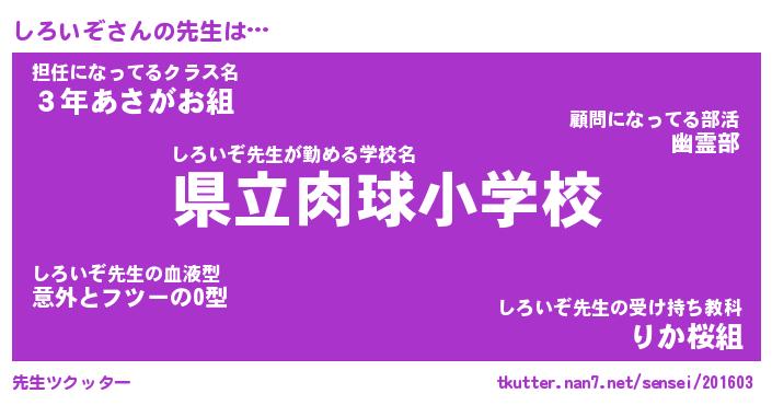 | ヒーロー風カッコイイあだ名 | 『スーパーシロイゾ』『暗黒騎士シロ』 |