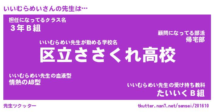 | ヒーロー風カッコイイあだ名 | 『スーパーイイムラメイ』『魔戒騎士イイ』 |