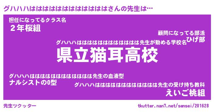 | 男性向けラノベタイトル風あだ名 | 『グハハハははははははははははははの憂鬱』 |