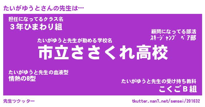 | ヘコむあだ名 | 『たいもー』『つくし』『たいお』 |