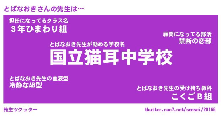 | ポケモン風あだ名 | 『トバチュウ』『トバナダネ』 |
