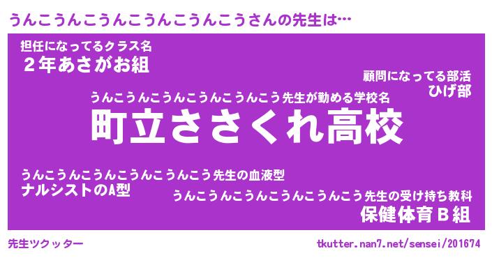 | 学校 | うんこうんこうんこうんこうんこう校長が勤める学校の名前『県立女子にゃんにゃん高校』 |