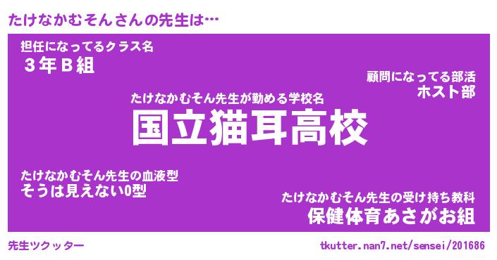| ヘコむあだ名 | 『たけにー』『豆乳』『たけお』 |