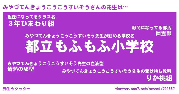 | 肩書あだ名 | 『みやづてんきょうこうこうすいそう店長』 |