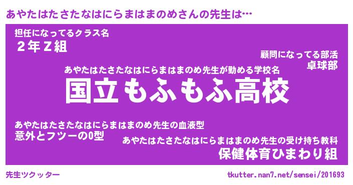 | 欧米人風あだ名 | 『マイケルあやたはたさたなはにらまはまのめ』 |
