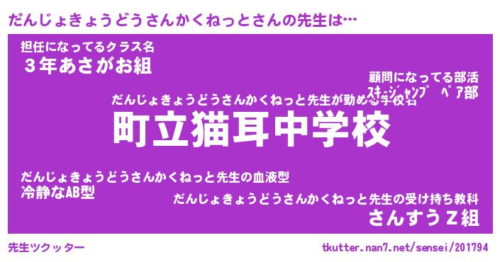 | 意味不明あだ名 | 『ペロリンだんじょきょうどうさんかくねっと』 |