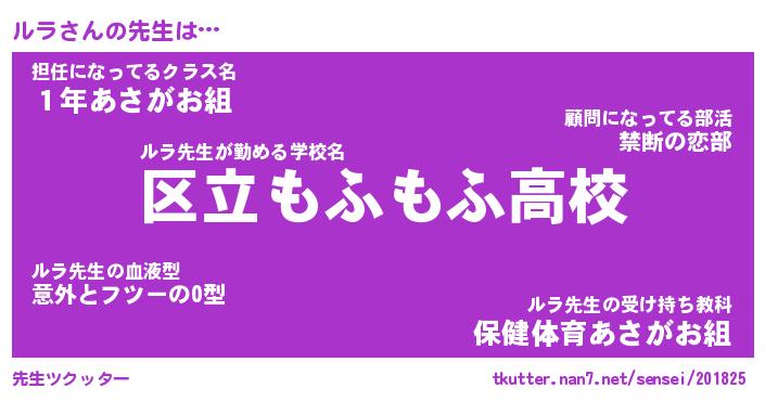 | 意味不明あだ名 | 『ペロリンルラ』『ルラフォーエバー』 |
