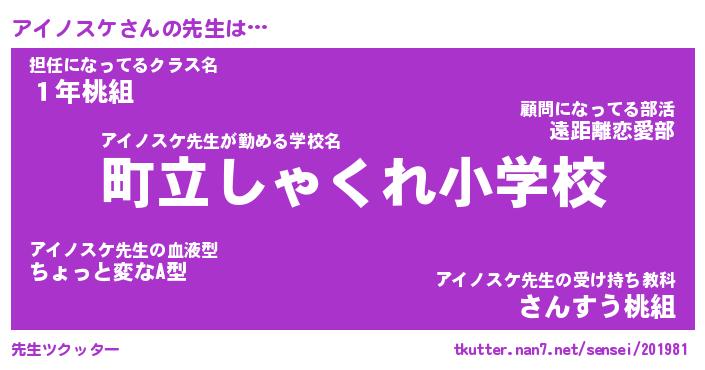 | ヒーロー風カッコイイあだ名 | 『スーパーアイノスケ』『天弓騎士アイ』 |