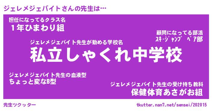 | 伝説のあだ名 | 『伝説のスナイパージェレメジェバイト』 |