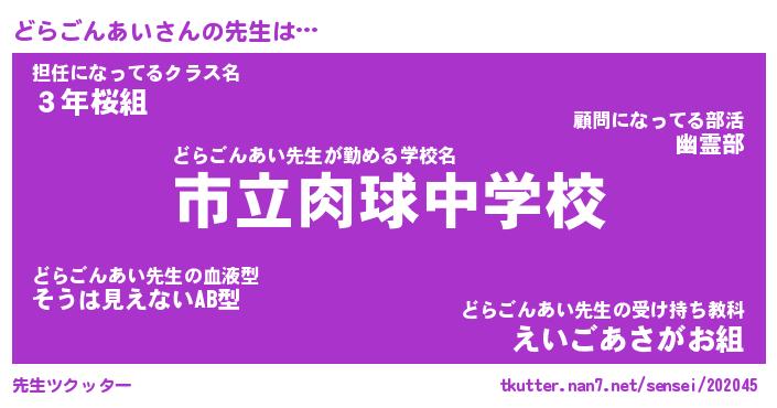 | ヘコむあだ名 | 『どらふぇ~』『なまこ酢』 |