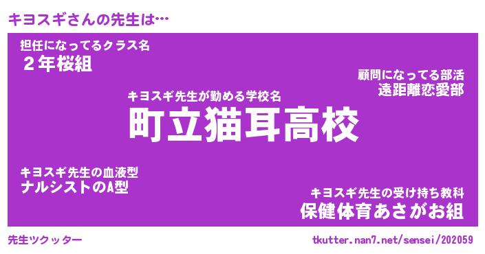 | 意味不明あだ名 | 『ペロリンキヨスギ』『永久保存キヨスギ』 |
