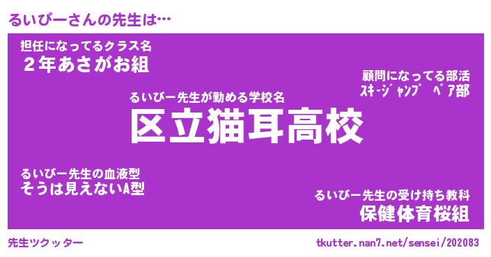 | 意味不明あだ名 | 『ペロリンるいぴー』『永久保存るいぴー』 |