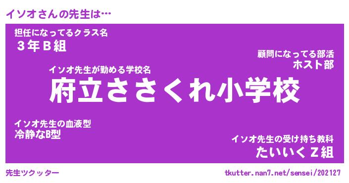 | ポケモン風あだ名 | 『イソチュウ』『イソオダネ』 |
