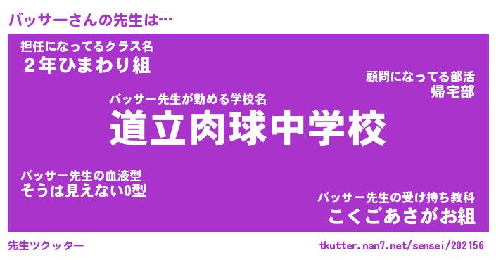 | 意味不明あだ名 | 『ペロリンバッサー』『永久保存バッサー』 |