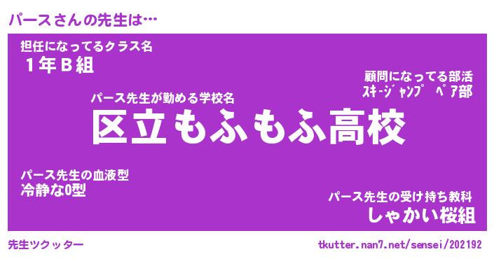 | ファンタジー風あだ名 | 『パーフェル』『エターナルパースー』 |