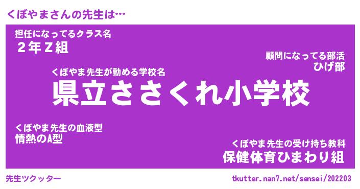 | 意味不明あだ名 | 『ペロリンくぼやま』『永久保存くぼやま』 |