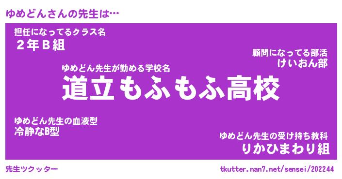 | 意味不明あだ名 | 『ペロリンゆめどん』『永久保存ゆめどん』 |