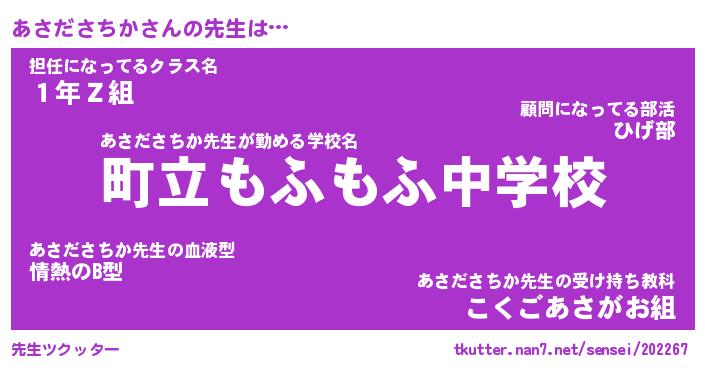 | ヘコむあだ名 | 『あさにゅー』『つくし』『あさっぺ』 |