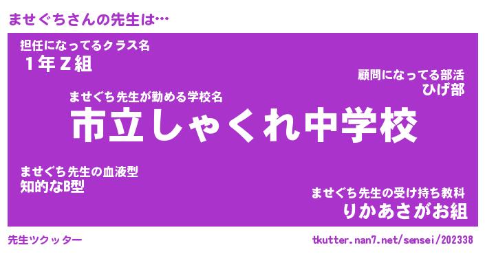 | ヘコむあだ名 | 『ませっふぃ~』『つくし』『ませを』 |
