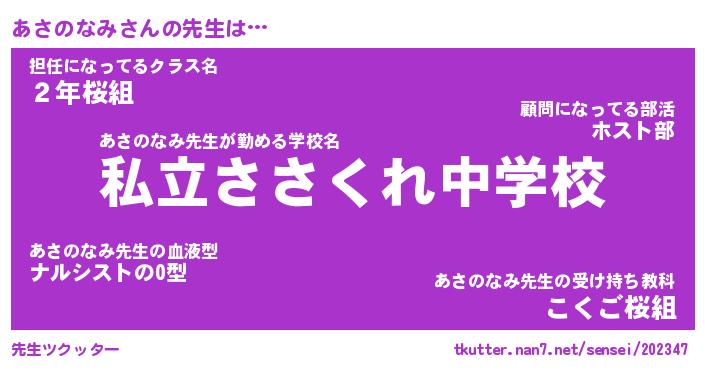 | 肩書あだ名 | 『あさのなみ社長令嬢』『あさのなみ教頭』 |