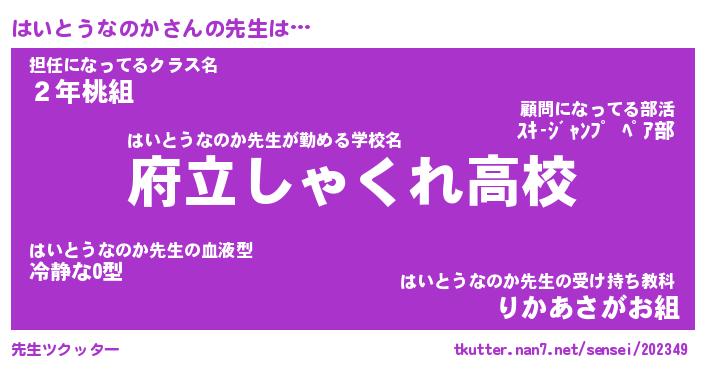| ポケモン風あだ名 | 『ハイチュウ』『ハイトダネ』 |