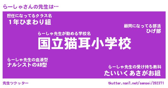 | 意味不明あだ名 | 『ペロリンらーしゃ』『永久保存らーしゃ』 |